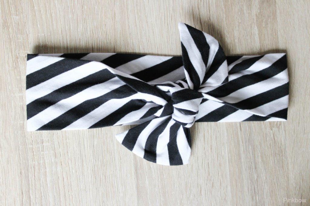 Šitá retro čelenka s černobílými pruhy.