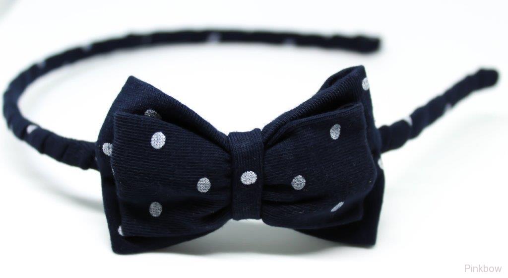 Ručně vyráběná tmavomodrá čelenka s bílými puntíky.