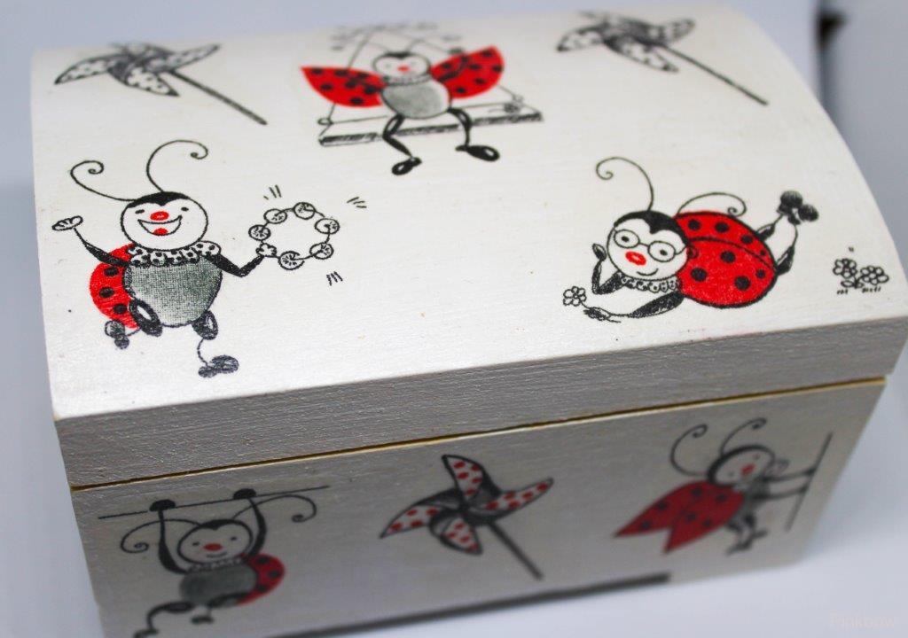 Ručně lakovaná a zdobená dřevěná krabička na dívčí poklady.