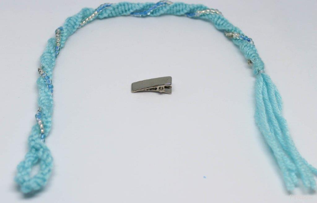 Ručně drhaný copánek k napletení do vlasů, zdobený barevnými kamínky. Copánek má nahoře zaplétací očko, které se naplete do vlasů. Pokud se vám nechce naplétat, použijete přiloženou sponečku, kterou ke každému copánku přikládáme zdarma.