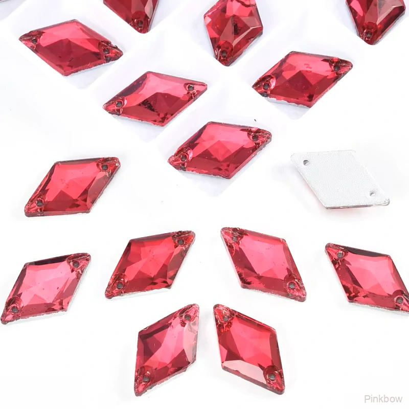 Krásné třpytivé kameny ve tvaru kosočtverce tmavě růžové - fuchsiové barvy. Jsou určené k našití na Vaše šaty a další projekty. Velikost 7x15mm.