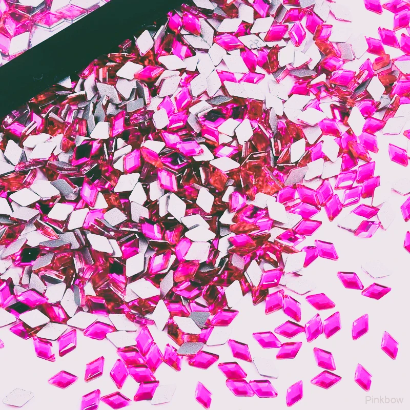 Krásné třpytivé kameny ve tvaru kosočtverce středně růžové barvy. Jsou určené k našití na Vaše šaty a další projekty. Velikost 10x18mm.